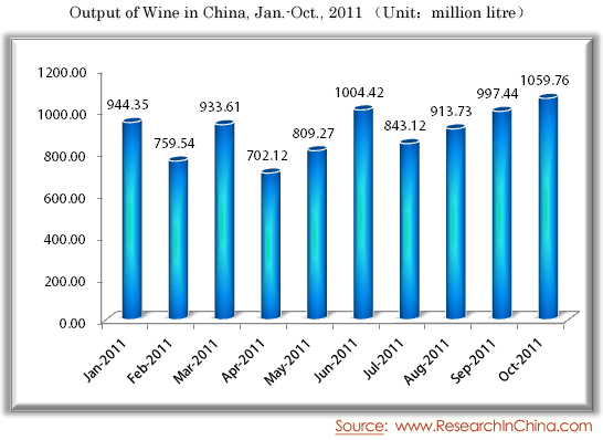 Output of Grape Wine in China by Province & City, Jan.-Apr. 2011 (Unit: kiloliter)