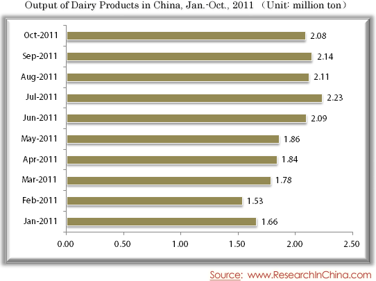 Output of Dairy Products in China, Jan.-Oct., 2011