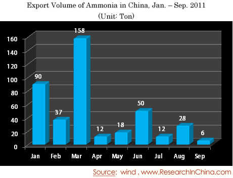 Export Volume of Ammonia in China, Jan. – Sep. 2011