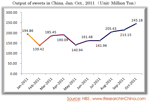 Export Volume of Sugar in China, Jan.-Dec., 2011