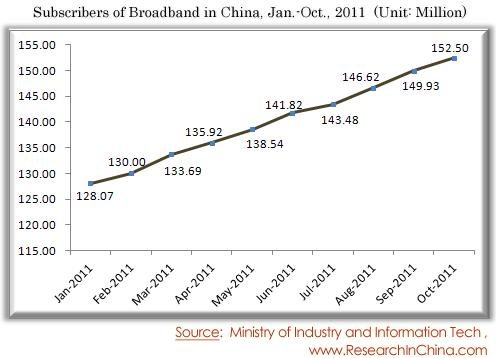 Subscribers of Broadband in China, Jan.-Oct., 2011