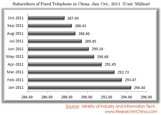 Subscribers of Fixed Telephone in China, Jan.-Oct., 2011