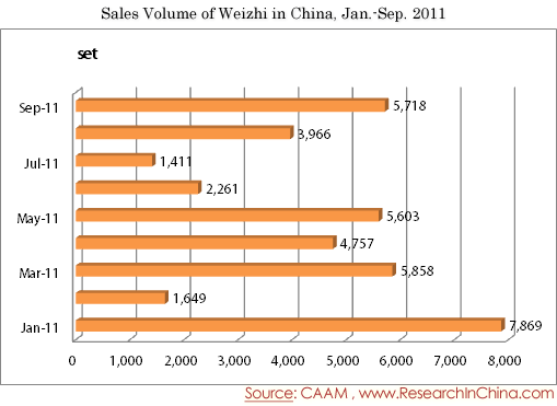 Sales Volume of Weizhi in China, Jan.-Sep. 2011