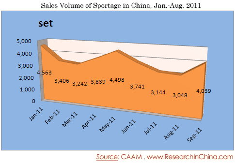 Sales Volume of Sportage in China, Jan.-Aug. 2011