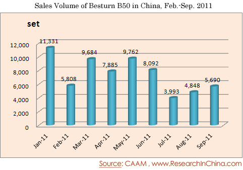 Sales Volume of Besturn B50 in China, Feb.-Sep. 2011