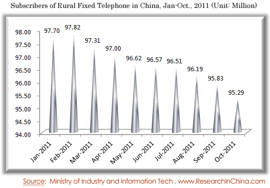 Subscribers of Rural Fixed Telephone in China, Jan-Oct., 2011