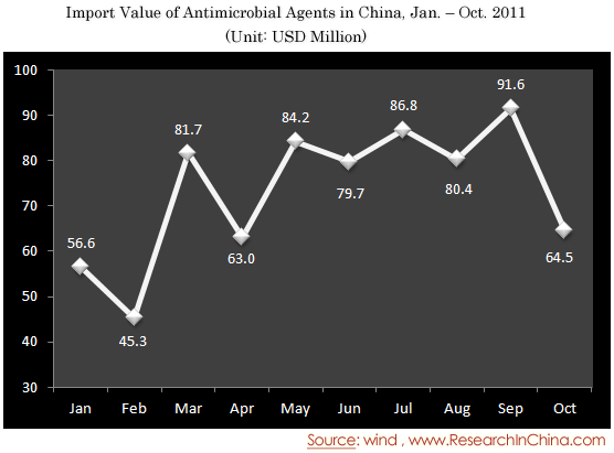 Import Value of Antimicrobial Agents in China, Jan. – Oct. 2011