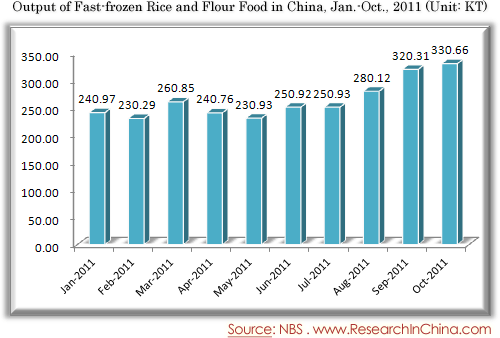 Output of Fast-frozen Rice and Flour Food in China, Jan.-Oct., 2011