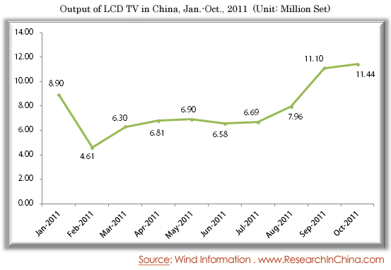 Output of LCD TV in South America, Jan.-Nov., 2011