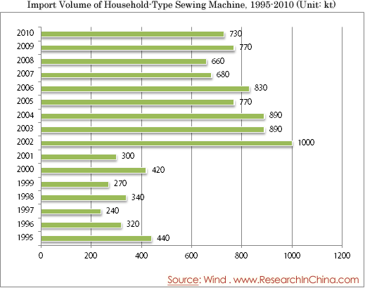 Import Volume of Household-Type Sewing Machine, 1995-2010