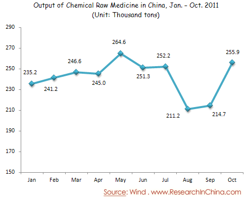 Output of Chemical Raw Medicine in China, Jan. – Oct. 2011