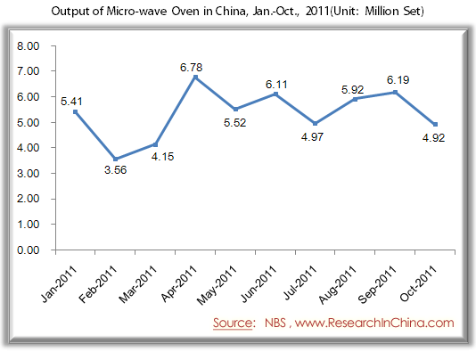 Output of Micro-wave Oven in China, Jan.-Oct., 2011