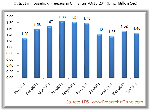 Output of household Freezers in China, Jan.-Oct., 2011