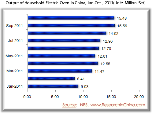 Output of Household Electric Oven in China, Jan-Oct., 2011