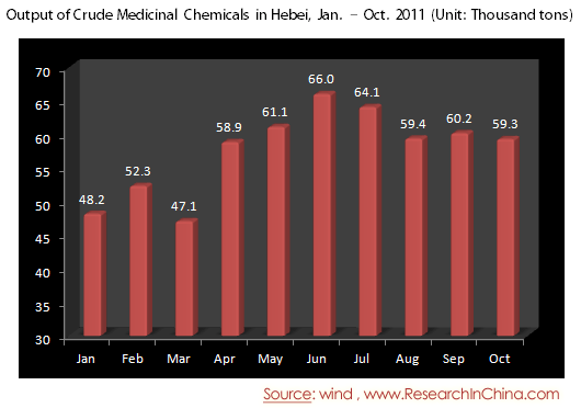 Output of Crude Medicinal Chemicals in Hebei, Jan. – Oct. 2011 (Unit: Thousand tons)