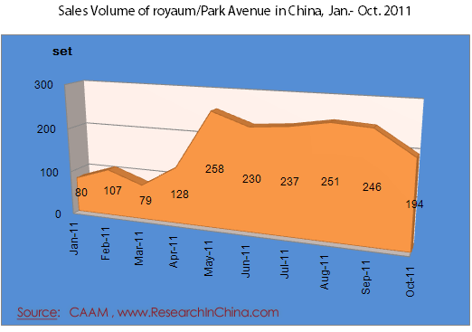 Sales Volume of royaum/Park Avenue in China, Jan.- Oct. 2011