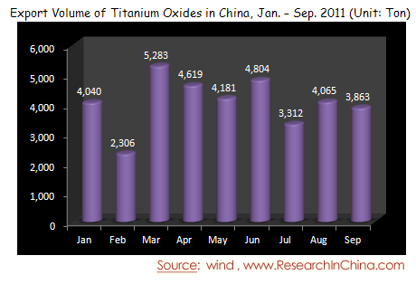 Export Volume of Titanium Oxides in China, Jan. – Sep. 2011