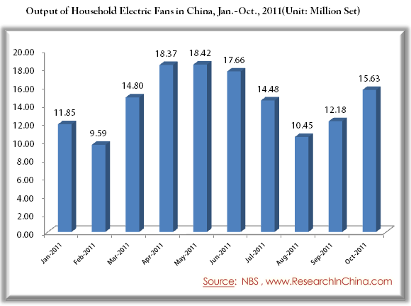 Output of Household Electric Fans in China, Jan.-Oct., 2011