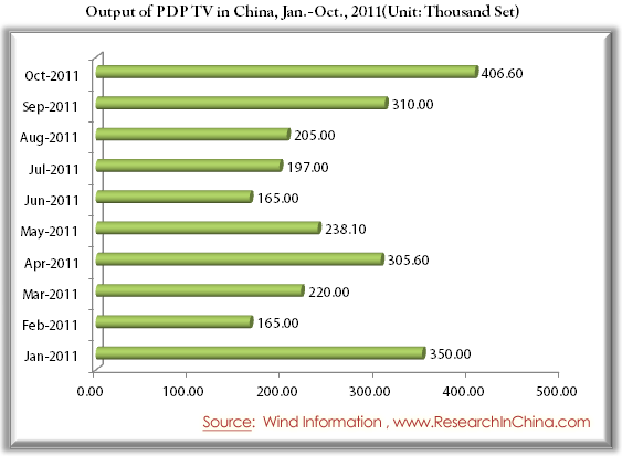 Output of PDP TV in China, Jan.-Oct., 2011