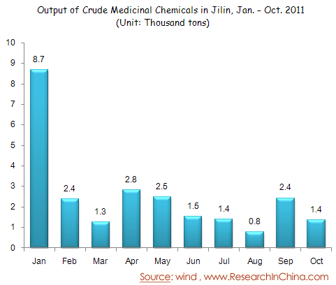 Output of Crude Medicinal Chemicals in Jilin, Jan. – Oct. 2011