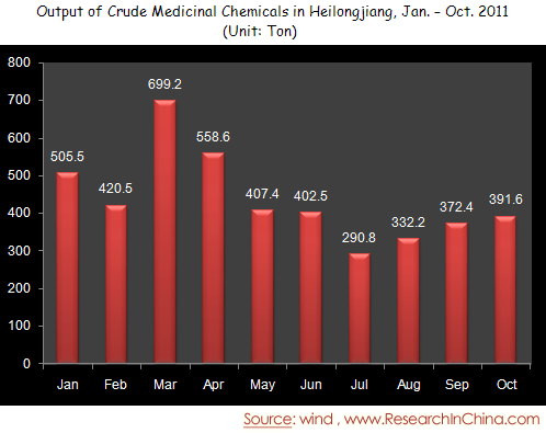 Output of Crude Medicinal Chemicals in Heilongjiang, Jan. – Oct. 2011