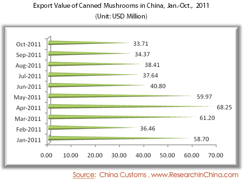 Export Value of Canned Mushrooms in China, Jan.-Oct., 2011