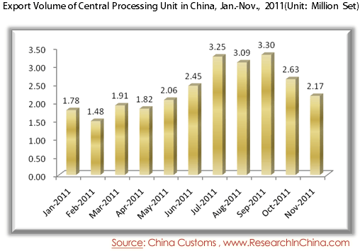Export Volume of CPU in China, Jan.-Nov., 2011