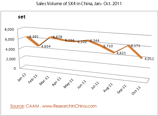 Sales Volume of SX4 in China, Jan.- Oct. 2011
