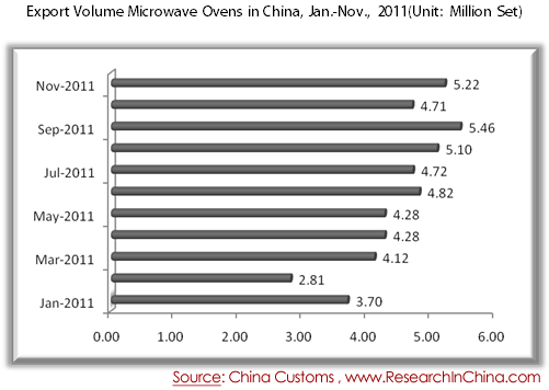 Export Volume Microwave Ovens in China, Jan.-Nov., 2011