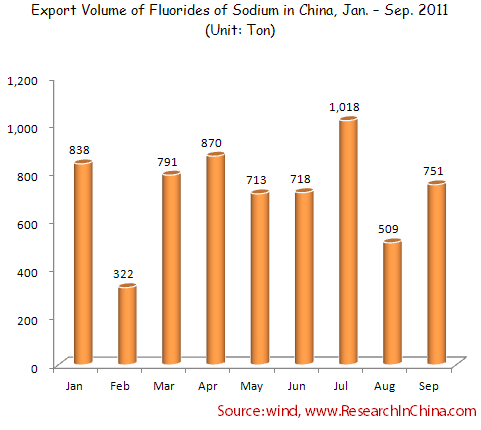 Export Volume of Fluorides of Sodium in China, Jan. – Sep. 2011