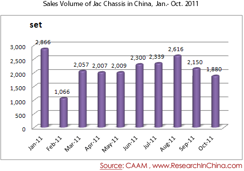 Sales Volume of Jac Chassis in China, Jan.- Oct. 2011