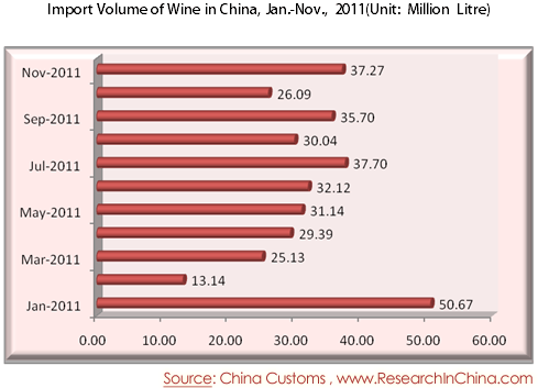 Import Volume of Wine in China, Jan.-Nov., 2011