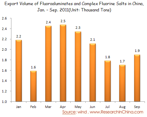Export Volume of Fluoroaluminates and Complex Fluorine Salts in China, Jan. – Sep. 2011