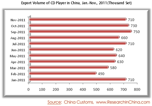 Export Volume of CD Player in China, Jan.-Nov., 2011