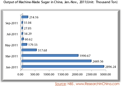 Output of Machine-Made Sugar in China, Jan.-Nov., 2011