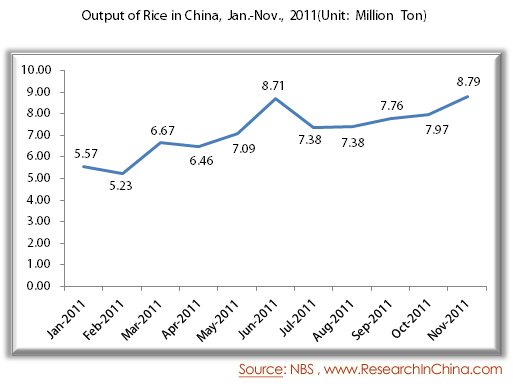 Output of Rice in China, Jan.-Nov., 2011