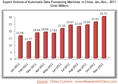 Export Volume of Automatic Data Processing Machines in China, Jan.-Nov., 2011
