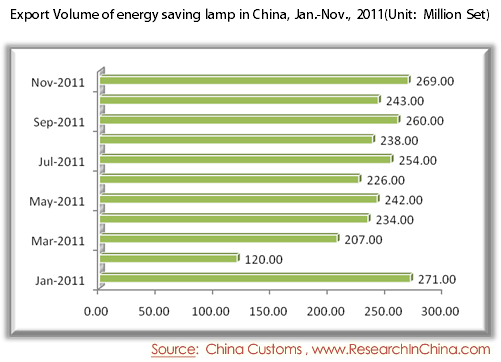 Export Volume of Energy Slamp in China, Jan.-Nov., 2011