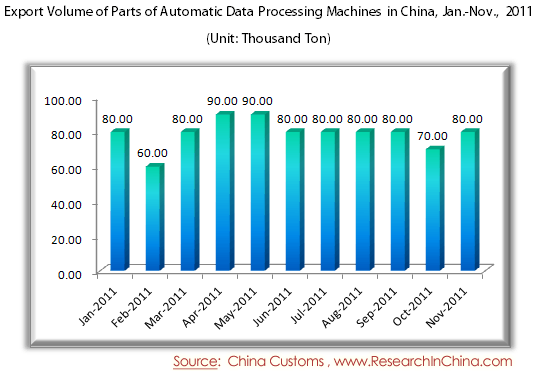 Export Volume of Parts of Automatic Data Processing Machines in China, Jan.-Nov., 2011