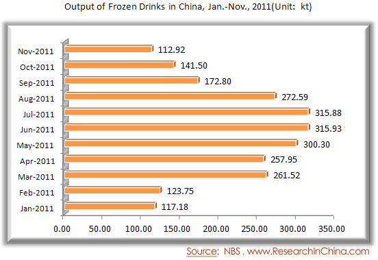 Output of Frozen Drinks in China, Jan.-Nov., 2011
