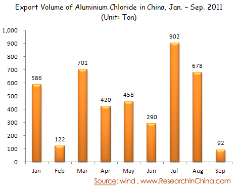 Export Volume of Aluminium Chloride in China, Jan. – Sep. 2011