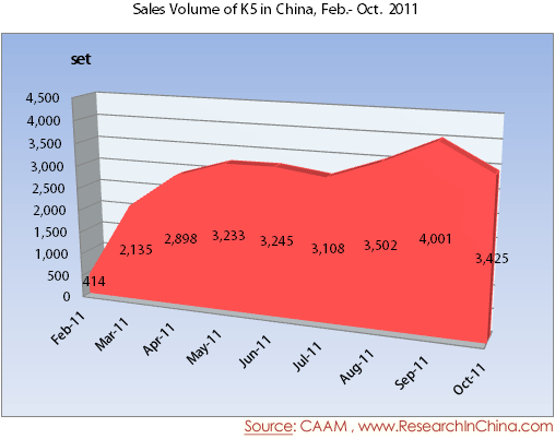 Sales Volume of K5 in China, Feb.- Oct. 2011