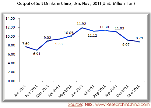 Output of Soft Drinks in China, Jan.-Nov., 2011
