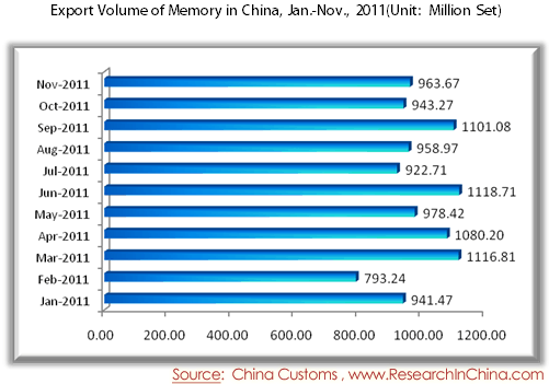 Export Volume of Memory in China, Jan.-Nov., 2011
