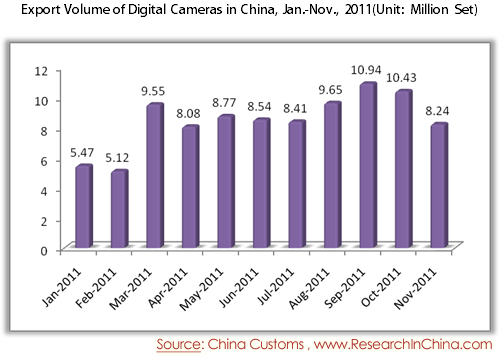 Export Volume of Digital Cameras in China, Jan.-Nov., 2011