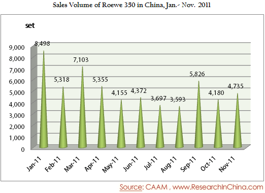 Sales Volume of Roewe 350 in China, Jan.- Nov. 2011