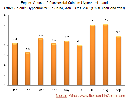 Export Volume of Commercial Calcium Hypochlorite and Other Calcium Hypochlorites in China, Jan. – Oct. 2011