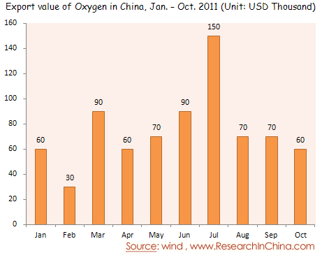 Export value of Oxygen in China, Jan. – Oct. 2011