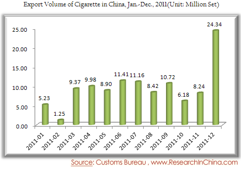Export Volume of Cigarette in China, Jan.-Dec., 2011