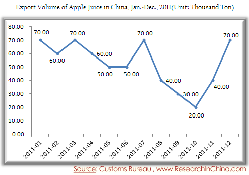 Export Volume of Apple Juice in China, Jan.-Dec., 2011